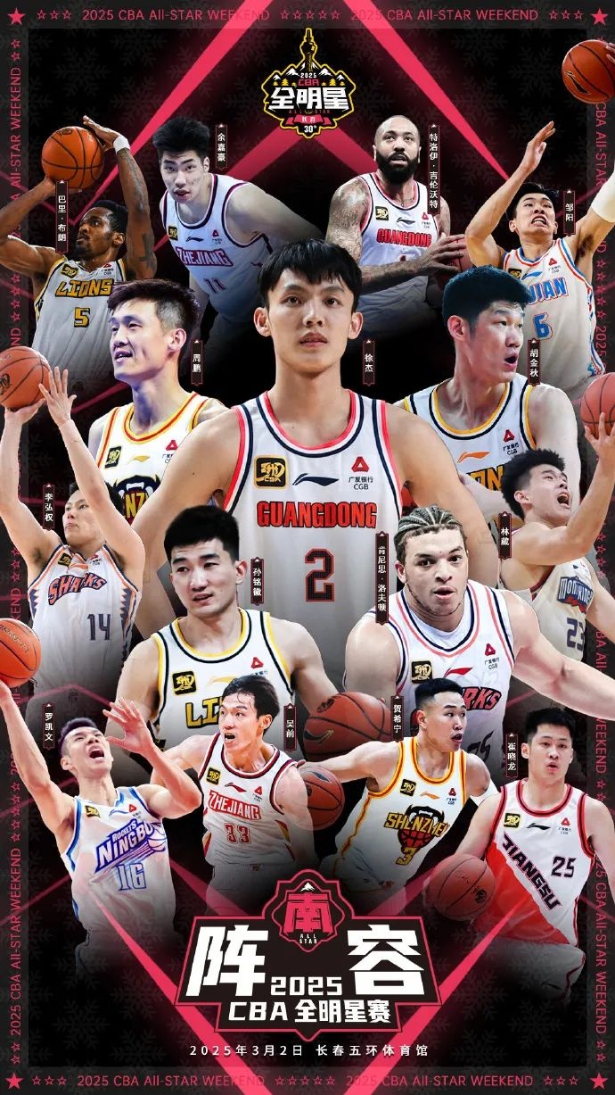 何为全明星赛?说白了就是球星欢聚一堂给球迷们献礼的比赛。显然,CBA联赛只读懂了“欢聚一堂”这个词。2025年CBA全明星周末正赛的名单是: