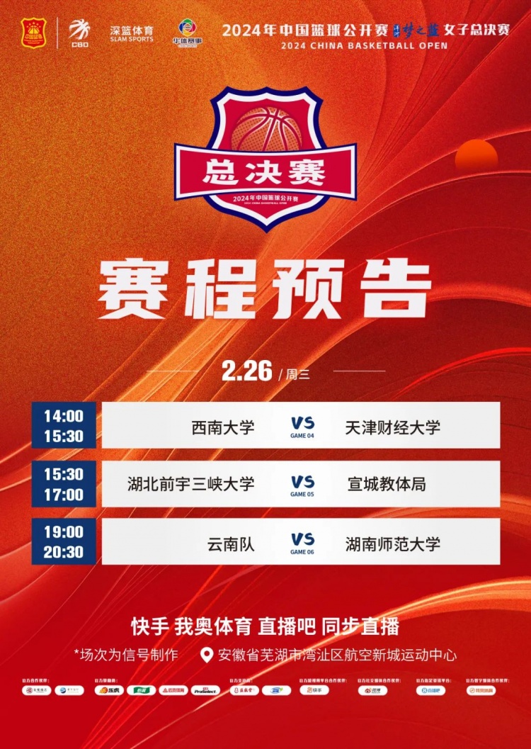 2月25日,2024年中国篮球公开赛洋河梦之蓝女子总决赛在安徽省芜湖市湾沚区航空新城运动中心打响。在首轮进行的三场比赛中,云南队、西南大学、湖南师范大学取得开门红。