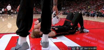 望无大碍!迪克上篮后被阿门的肘碰到头部 缓了好一会&回更衣室了