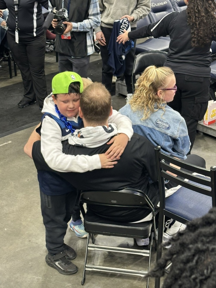 本场比赛,森林狼老将乔·英格尔斯12岁的自闭症儿子雅各布,在家人的陪同下来到了现场观看父亲的比赛。在家人的支持下乔-英格尔斯今晚首发出战六分钟,尽管英格尔斯未能得分,但这个夜晚的意义远非技术统计所能体现