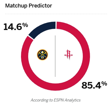 约基奇缺阵!火箭10连胜稳了?ESPN预测明日胜率:火箭高达85.4%