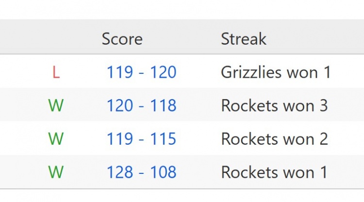 季后赛见?本赛季常规赛火箭对灰熊3胜1负 三场关键时刻决胜