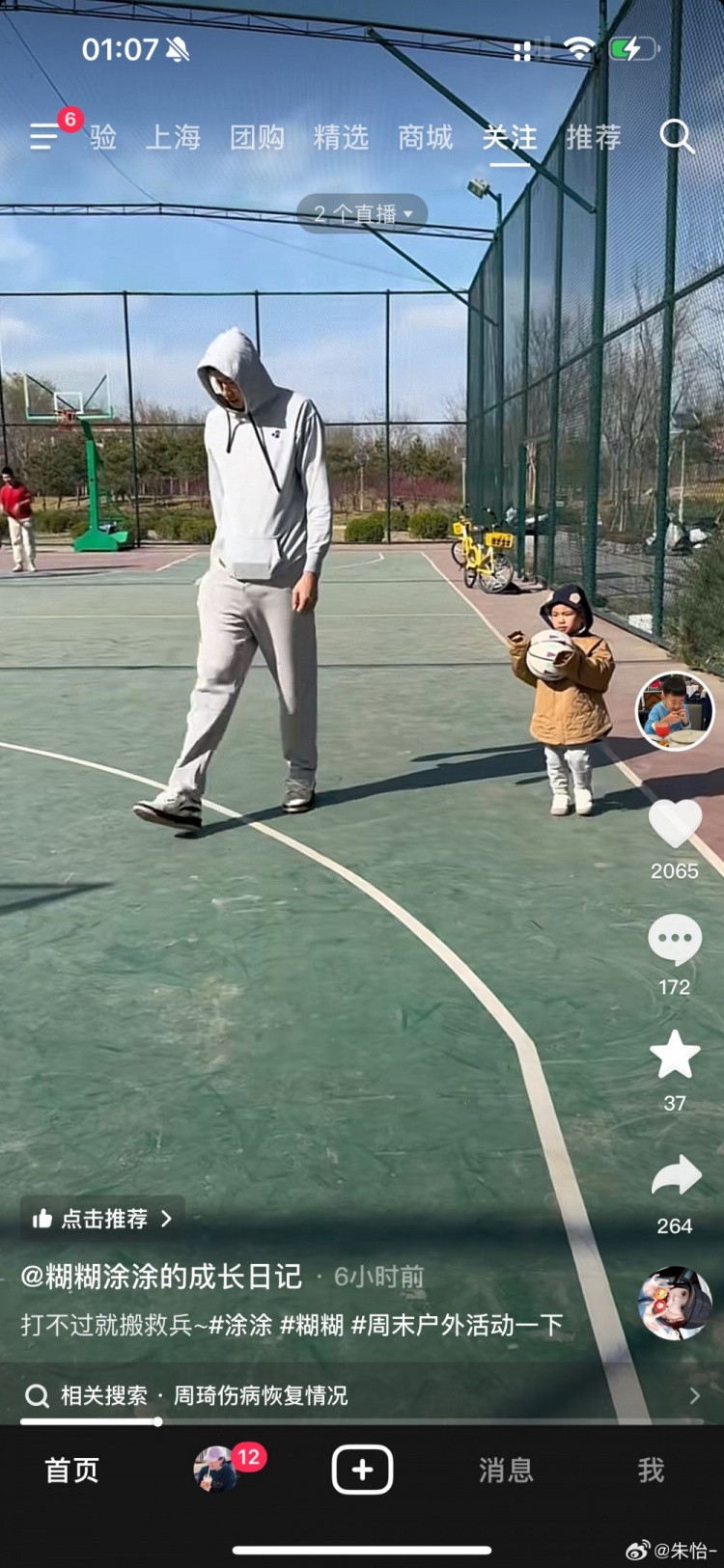 3月30日讯 今日,记者朱怡晒出了周琦在做完手术后回归家庭带娃的照片。