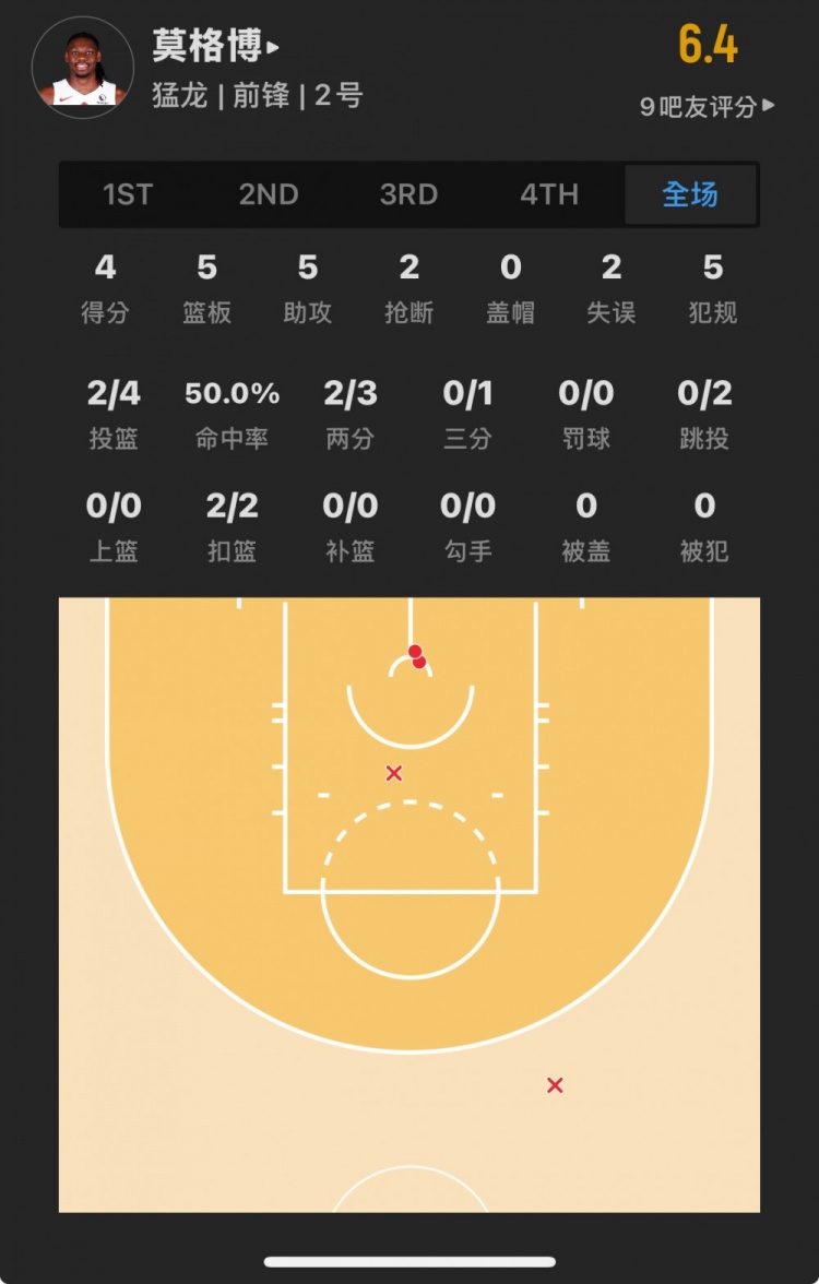 猛龙31号秀 乔纳森-莫格博 登场21.4分钟