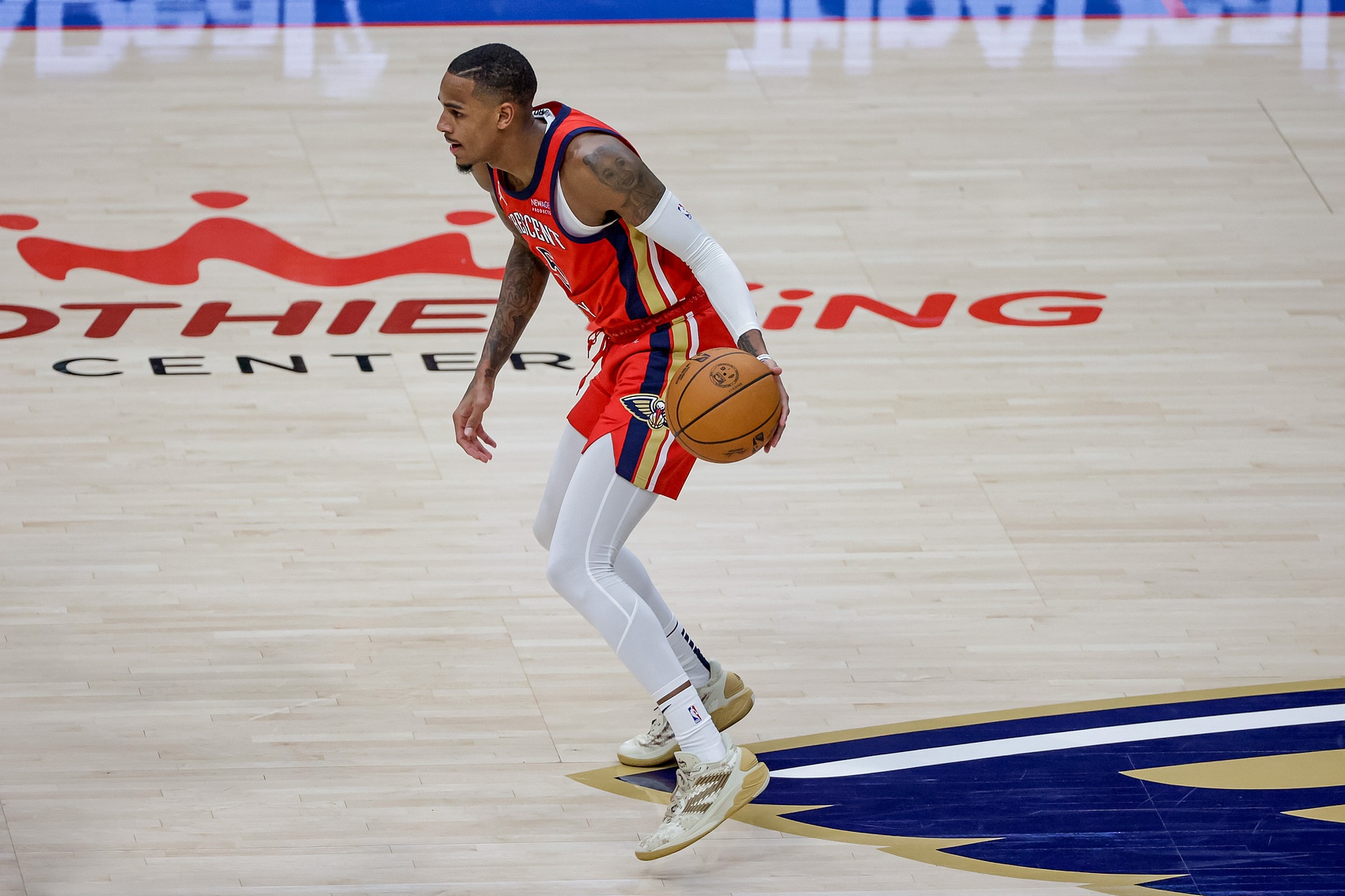 德章泰-穆雷赛季场均17.5分6.5板7.4助2断 投篮命中率39.3% 2月2日讯 此前官方宣布,鹈鹕后卫德章泰-穆雷右跟腱断裂,赛季报销。本赛季至今,德章泰-穆雷代表鹈鹕出战了31场比赛,场均能得到17.5分6.5篮板7.4助攻2抢断,投篮命中率39.3%,三分命中率2 2025/02/02