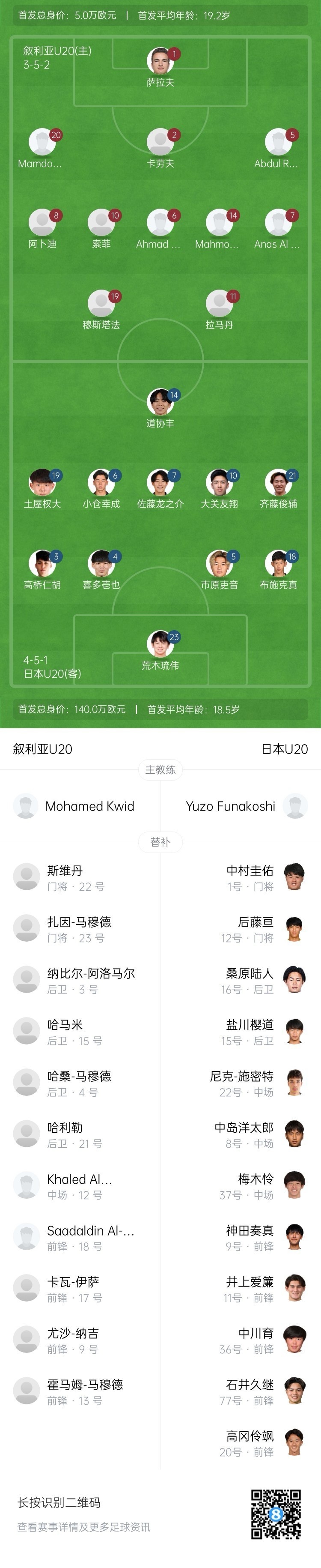 2月17日讯 北京时间今天下午15:00,U20亚洲杯D组第二轮叙利亚U20vs日本U20的比赛将打响。