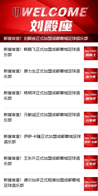 欢迎杨明洋来到成都,加入成都蓉城的大家庭。你的到来,将帮助蓉城在新赛季中取得更优异的成绩!