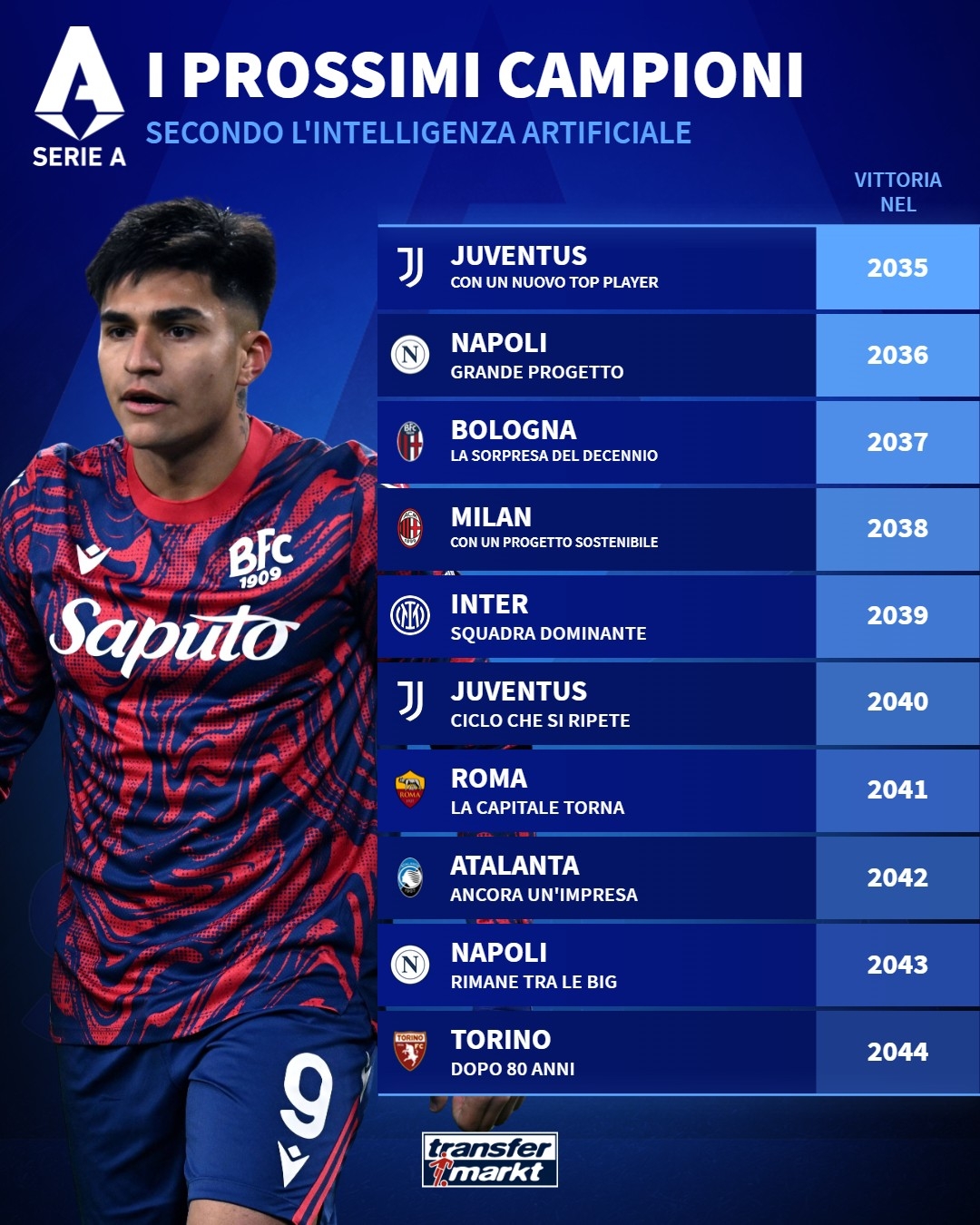ChatGPT预测未来20年意甲:国米尤文4冠 米兰3冠 博洛尼亚都灵1冠