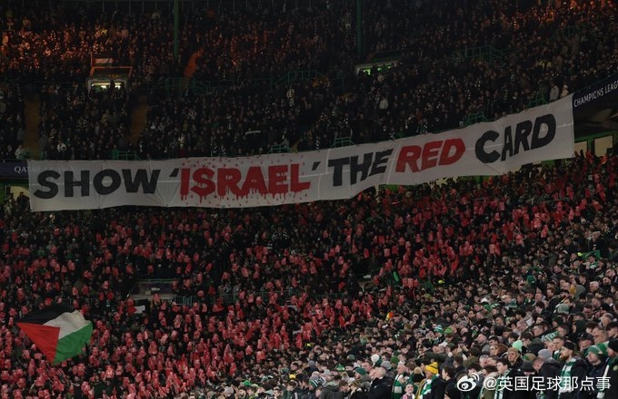 此前凯尔特人1比2不敌拜仁的欧联比赛中,凯尔特人球迷拉起条幅:“向以色列出示红牌” (图3)