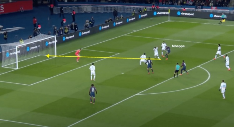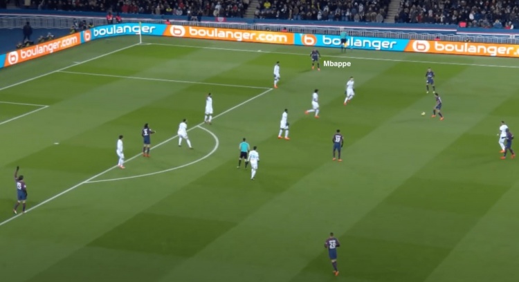 姆巴佩本赛季又开始频繁地进行身后跑位了