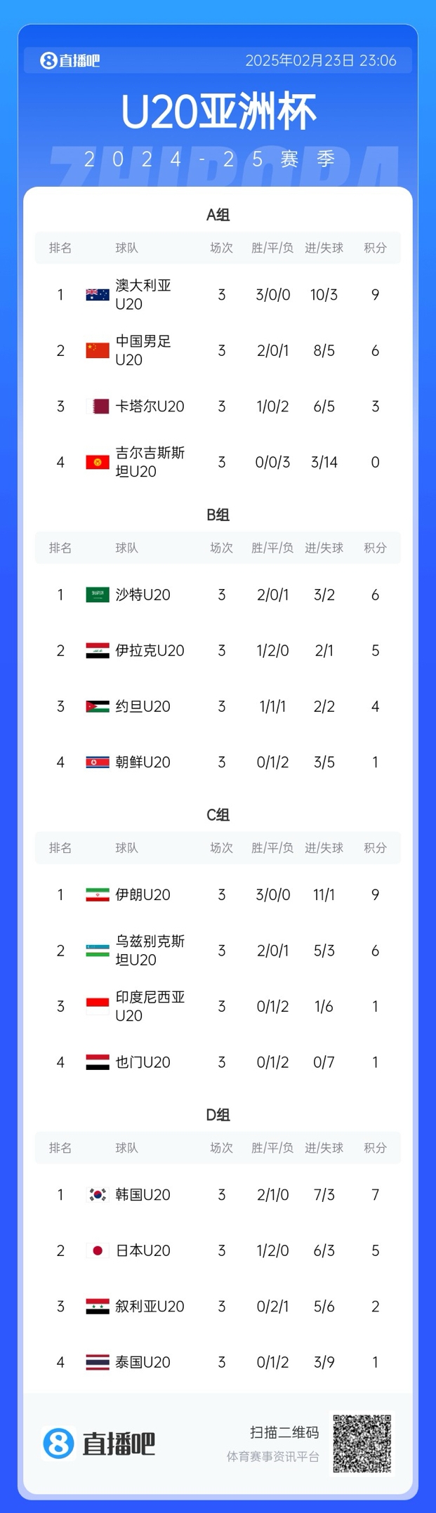 媒体人在社媒写道:我昨天说这届国青6-8名很多人还不服气,其实我这个已经是往高了说的,真实情况是7-10名。你们看看今天出场的这四个队,哪个我们能打过?被淘汰的伊朗还是和韩国打得难解难分的乌兹?伊拉克你能打得过?换句话讲咱们和沙特换,在那个小组,最后能不能出线都难讲。从这个角度讲咱们足协真的尽力了。正视现实吧。