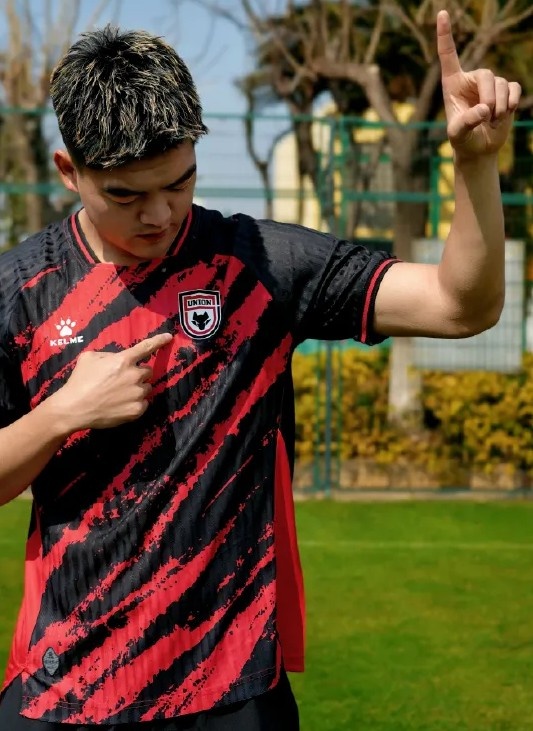 球衣上,斜向分布的不规则黑红条纹,恰似西北狼在激烈搏斗中留下的深刻印记。这些纹路,既是不屈抗争的伤痕,也是奋勇拼搏的勋章。它们所带来的强大视觉冲击力,淋漓尽致地展现出陕西联合勇战无畏的战斗特质,时刻激励着西北狼的将士们,无畏前行,续写荣耀篇章。
