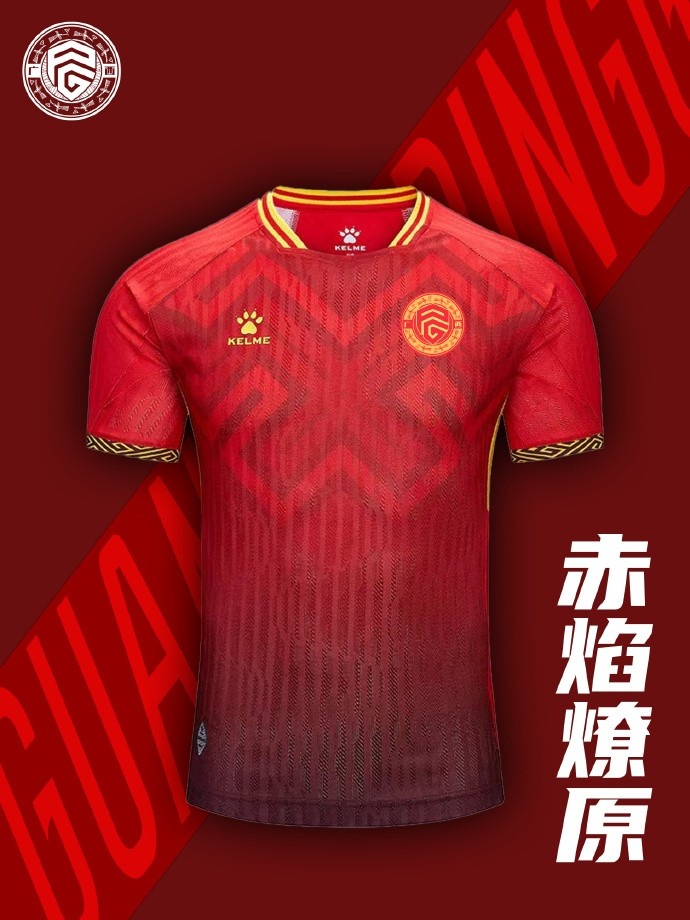 当赤焰浸染天际,当热血燃动赛场!全新主场战袍以壮乡儿女的赤诚为底色,通体红焰由深至浅跃动流淌,胸前壮族图腾如火焰升腾,缀以鎏金纹路勾勒锋芒。这套战袍不仅象征着壮乡人民的热情与赤诚,更彰显了球队新赛季崇尚进攻的风格。2025赛季,我们将身披这片红色赤焰,以雷霆万钧之势,向对手发起猛烈冲击,用速度与力量撕开防线,点燃每一场比赛的激情!