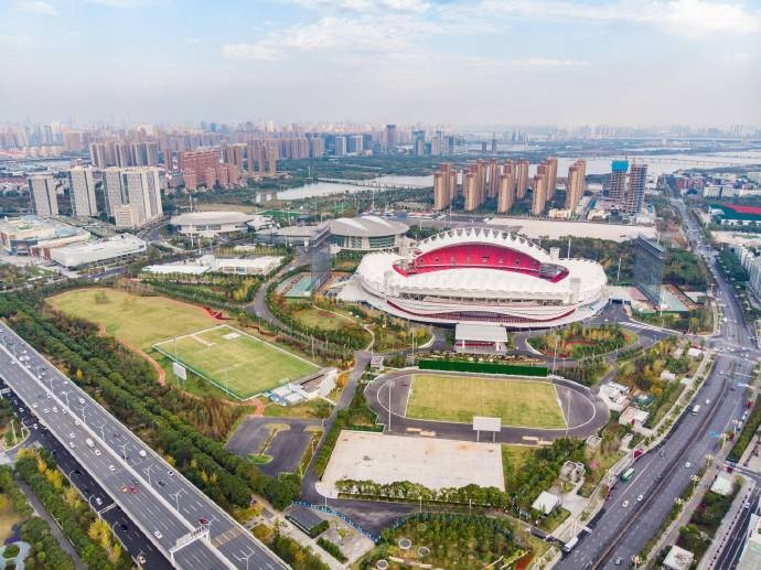 武汉体育中心体育场。相比位于市区的新华路体育场,武汉体育中心位于武汉经开区,距老城区相对较远。