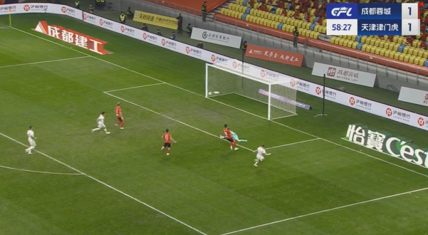 03月02日讯 中超第二轮,成都蓉城vs天津津门虎,比赛第59分钟,萨尔瓦多精妙直塞,阿代米推射远角破门,蓉城1-2津门虎。
