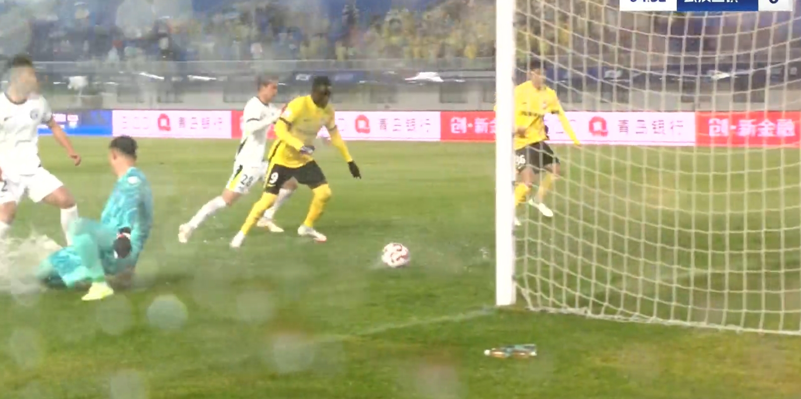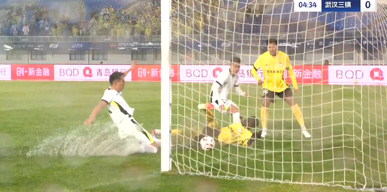 在中断前,比赛已经进行了18分钟,凭借阿齐兹的破门,场上比分青岛西海岸1-0领先武汉三镇。