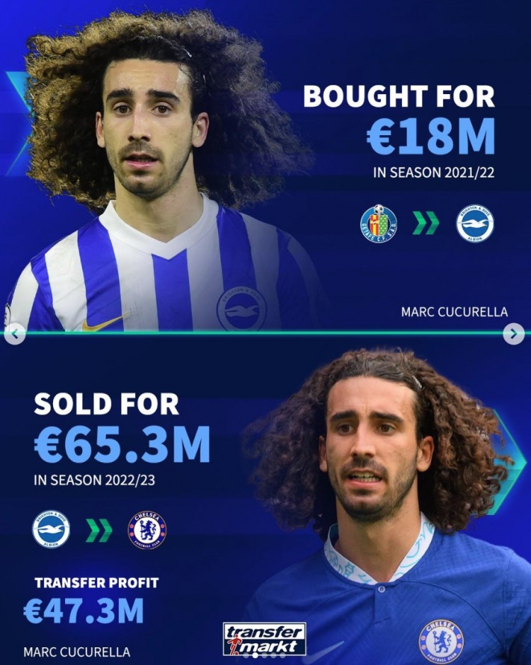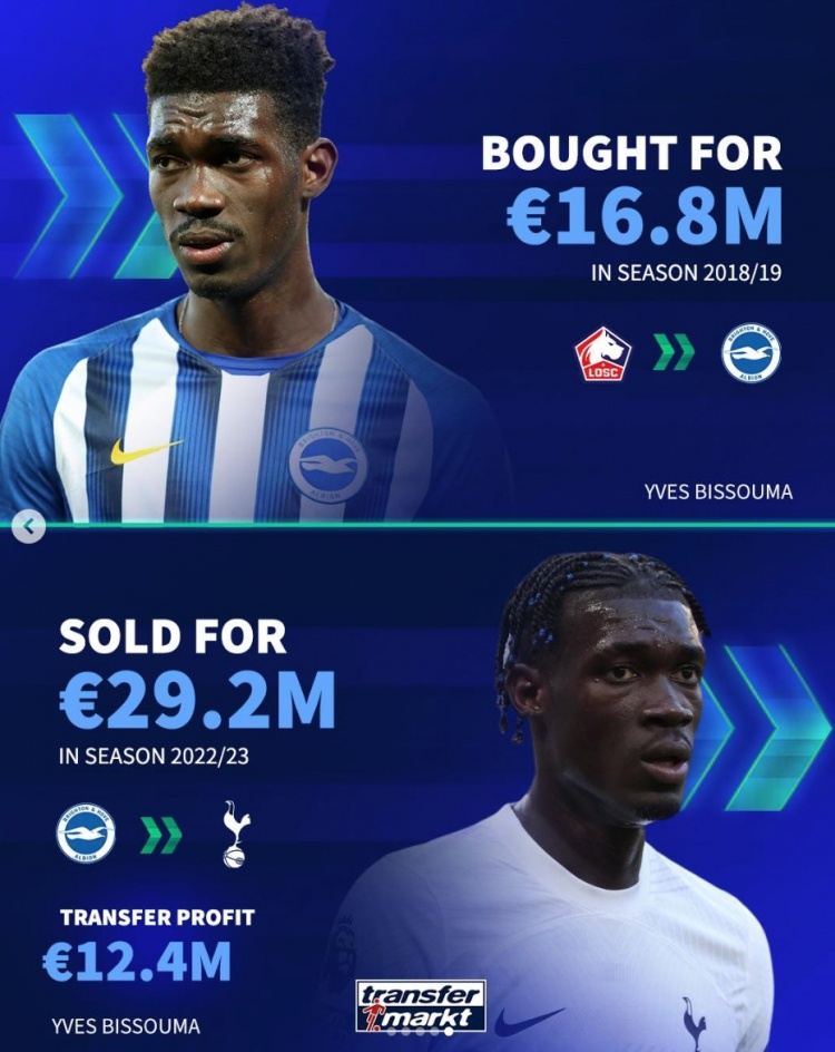3月3日讯 《转会市场》统计了布莱顿近年的5笔低买高卖转会操作,共计净赚超过2亿欧元。