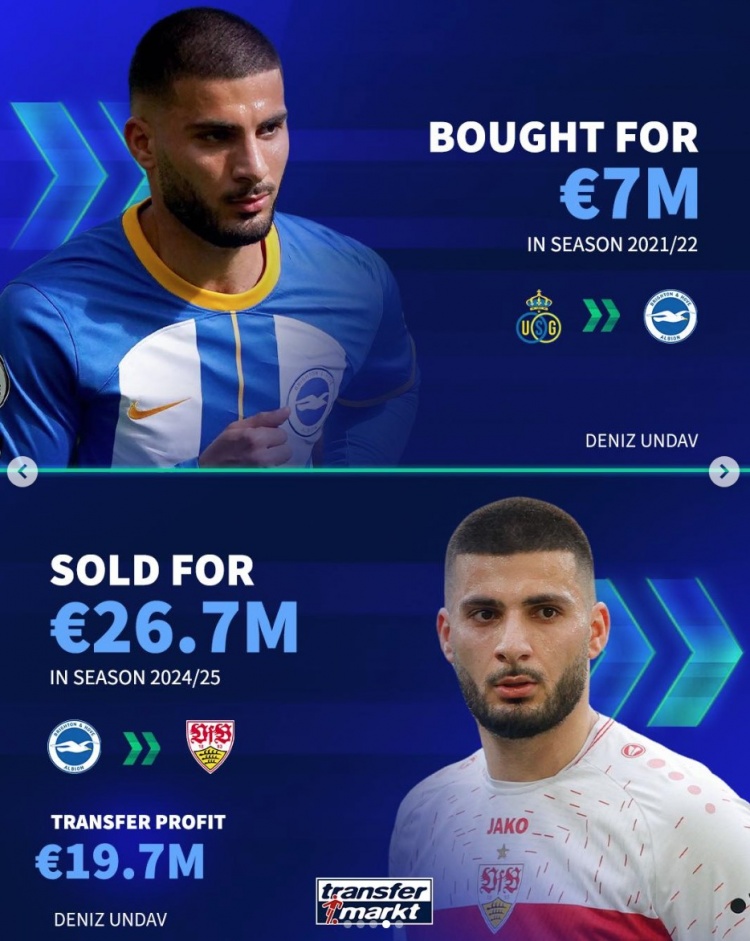 德转列布莱顿近年5笔低买高卖,净赚超2亿欧:凯塞多&库库在列
