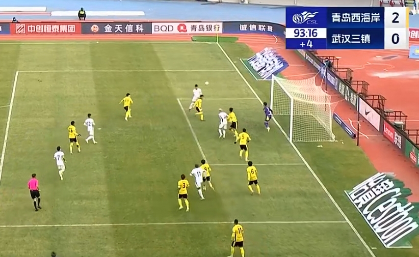 03月03日讯 中超联赛第2轮,青岛西海岸2-0击败武汉三镇,比赛尾声,帕拉西奥斯边路转身摆脱送出传中,郑浩乾门前头球顶飞。