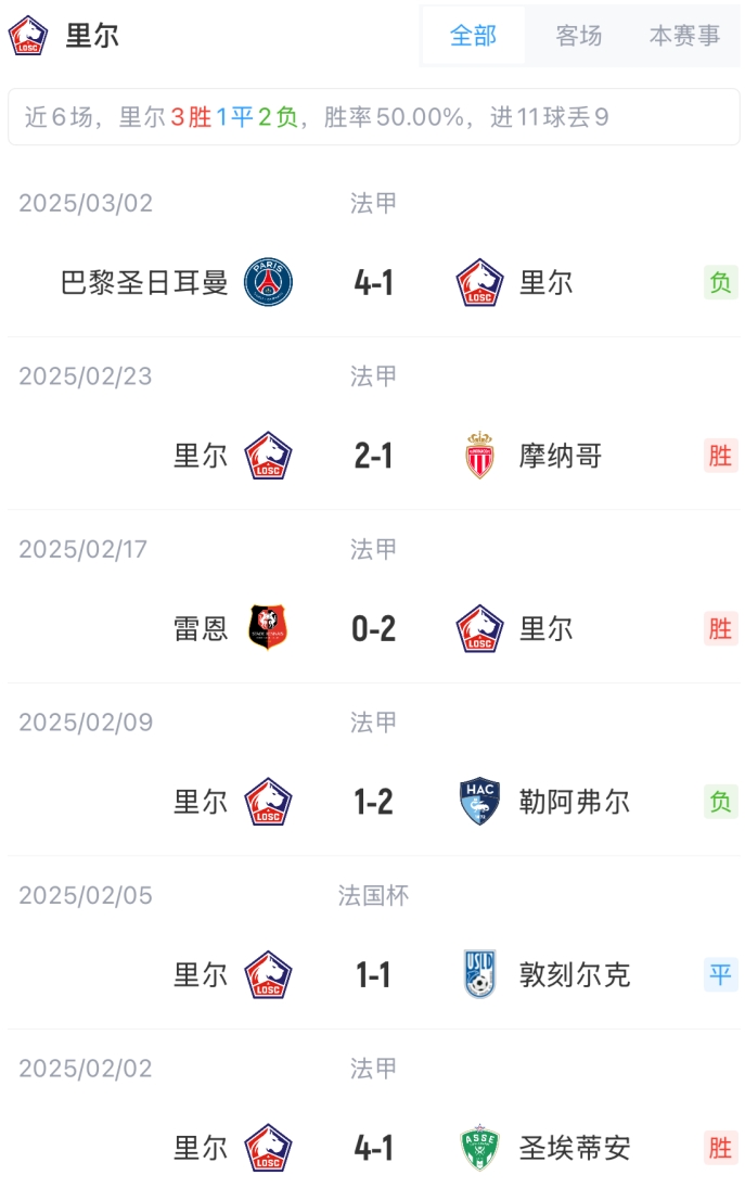 里尔首发:30-切瓦利尔、31-伊斯梅利、4-亚历桑德罗、18-迪亚克特、12-穆尼耶、32-布阿迪、21-安德烈、17-穆卡乌、29-伊桑-姆巴佩、7-哈拉尔德松、9-戴维