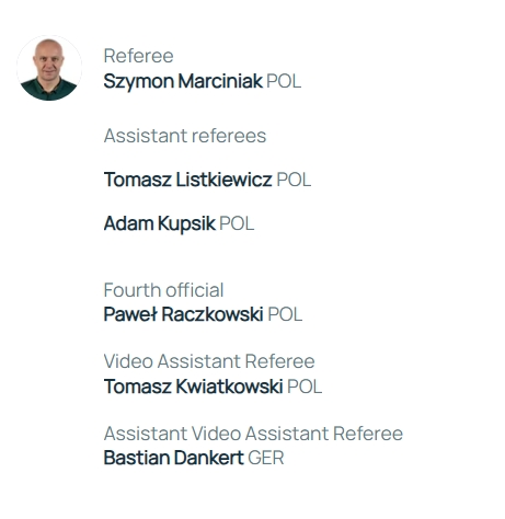 助理裁判:托马斯-利斯特凯维奇(波兰)、亚当-库普西克(波兰)