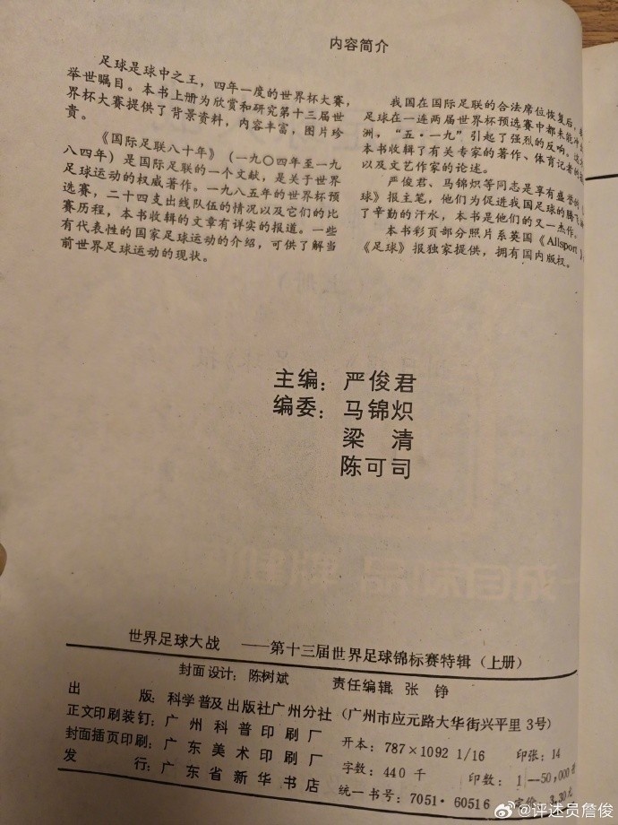 父亲说,这些小薄纸片挺“解渴”的。那里肯定也有严俊君老总的“耕耘之作”。我开始工作后,和“足球报”很多同行成为好友,可惜那时严总已经退居二线,无缘相见。今晚得知他老人家驾鹤西去,心中惆怅。谢谢您!曾经带我们这些球迷去“看世界”……