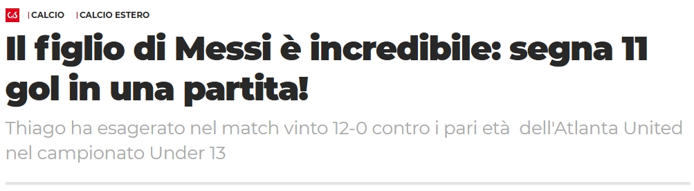 《罗体》标题:梅西的儿子太厉害了,一场比赛轰11球