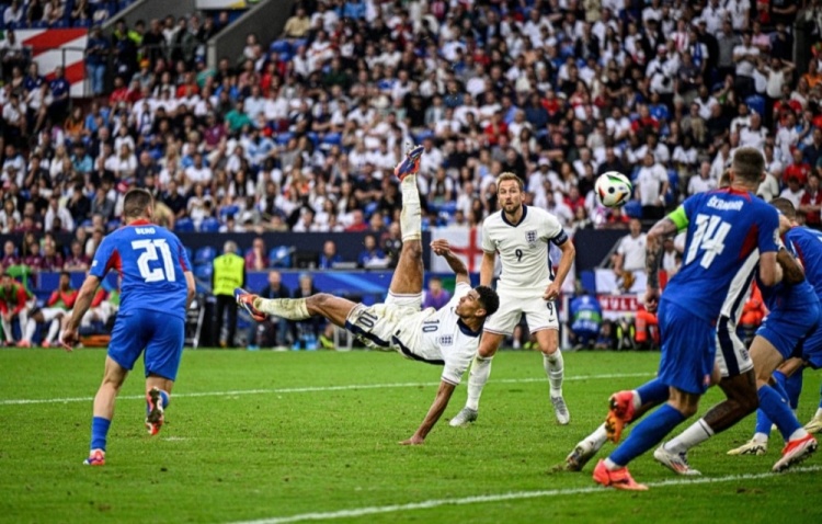 2024年欧洲杯英格兰与斯洛伐克的1/8决赛上,贝林厄姆倒钩破门,那一刻,他和他偶像齐达内一样出众的身体柔韧性、协调性展露无遗。