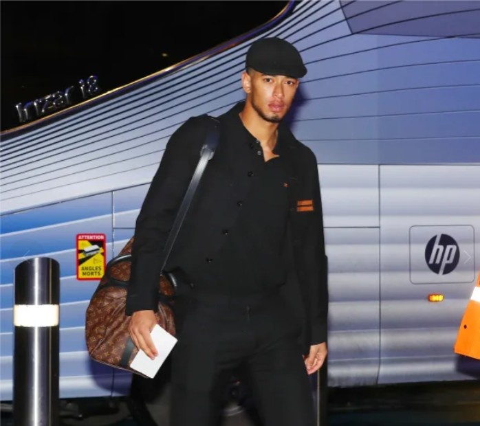 当地时间周二晚间,贝林厄姆随皇马全队一起飞回马德里,陪同英格兰国脚一起登机的有他的母亲和女友。贝林厄姆头戴一顶黑色平顶帽,搭配黑色夹克和衬衫,以及一只售价超过2000英镑的LV单肩包。