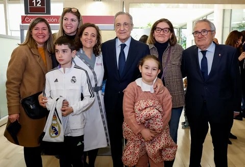 皇马主席弗洛伦蒂诺看望患癌儿童,并给他们分发礼物